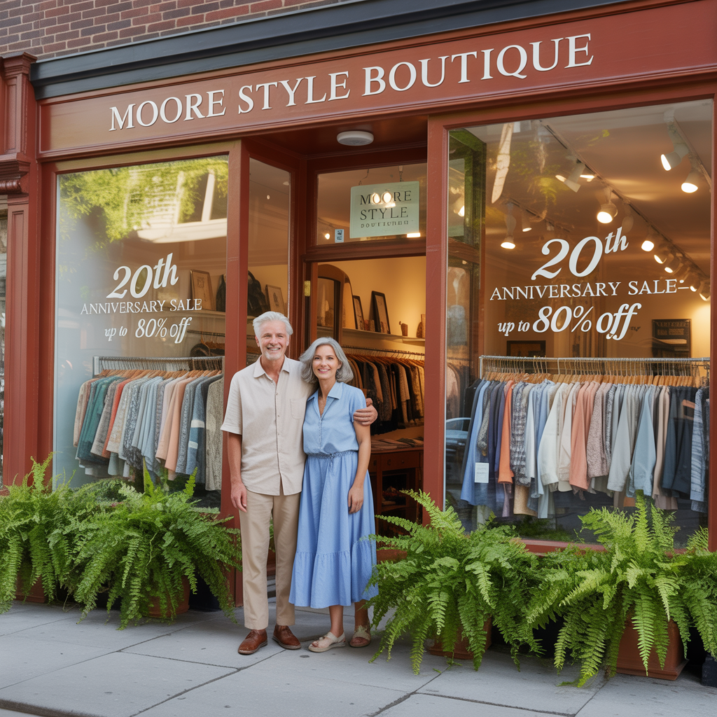 Since 2005, Moore Style Boutique has been helping women and men feel stylish and confident—with timeless pieces that last. Now that the boutique turned 20 we're celebrating with discounts of up to 70% for a limited time!